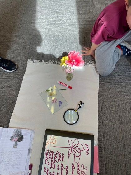 The first period involves a presentation by the adult, which can include the great stories, impressionistic charts, materials, experiments, and demonstrations. The focus is on introducing specific concepts, activating student interest, and providing a big-picture view before going into specific details. Rather than being vocabulary-based as with younger children, these lessons are intended to introduce elementary students to the wonder of the universe. In this first period, the adult gives only what is absolutely necessary for the lesson, so the students can move into their own exploration.